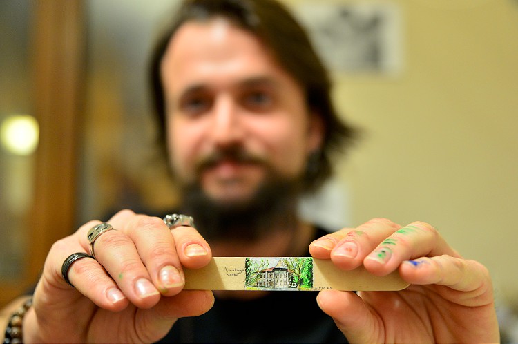 Çanakkale Onsekiz Mart Üniversitesi (ÇOMÜ) Tıp Fakültesi Hastanesi Beyin ve Sinir Cerrahisi Bölümü Araştırma Görevlisi Alpay Burak Doğru, pirinç ve incir çekirdeği, dil çubuğu, madeni para, hap ambalajı, kabak çekirdeği gibi objelere "büyüteçle görülebilen" resimler çiziyor.