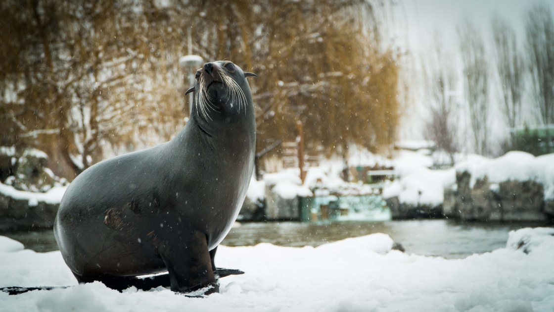 Hayvanat bahçesi yetkililerinin fotoğrafladığı soğuk iklim hayvanlarından kutup tilkisi, Güney Afrika penguenleri ve Güney Amerika kürklü foklar, yaşam alanlarında karlar içinde mutluluk pozları verdi.