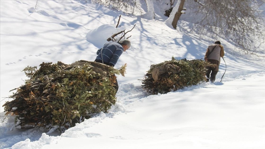 Çetin kış şartları ve bölgenin zorlu coğrafyasına rağmen hayvanlarının bakımını ihmal etmeyen besiciler, yazın motorlu araçların ulaşamadığı köylerin yüksek kesimlerinde biriktirdikleri ağaç dalları ile biçtikleri otları, kışın dik yamaçlardan ve derin vadilerden kızaklarla köylerine indiriyor.